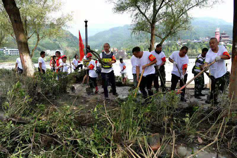 受汶川“8.20”强降雨特大山洪泥石流灾害影响,汶川县水磨镇受灾严重,连日来清淤工作任务艰巨。8月24日,在洪水退去后,水磨镇全面开展泥石流清淤工作。为帮助水磨镇清淤,映秀镇发扬一方有难,八方支援的精神,335名志愿者自发来到水磨镇共同帮助该镇清淤。