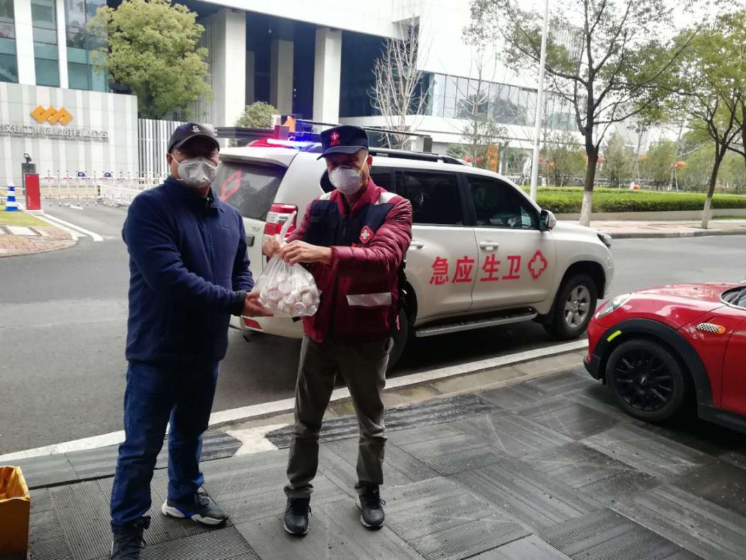 我院首批支援武汉医疗队队员2月3日就奔赴武汉开展救治工作。我们到达武汉后,得知他们生活物资需要补给,我们就主动将携带的物资分给先来的战友。战友之间的关心、分享让厚厚防寒服里的心温暖的跳动着。