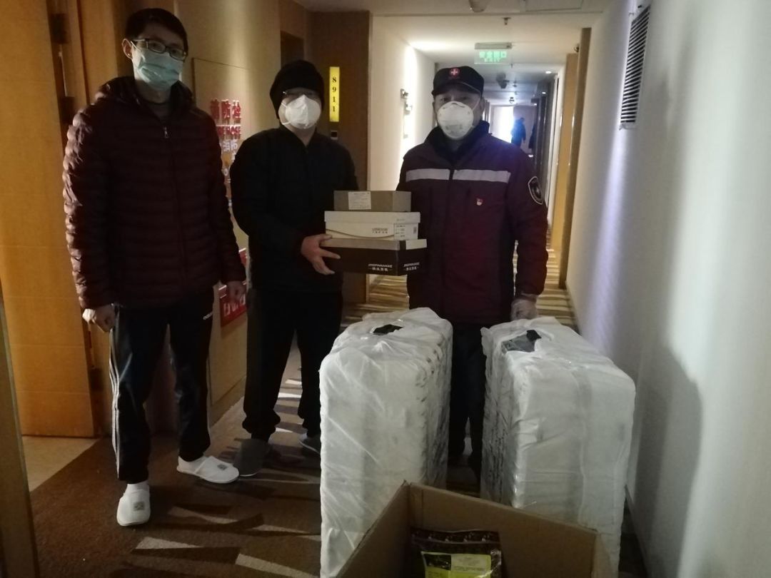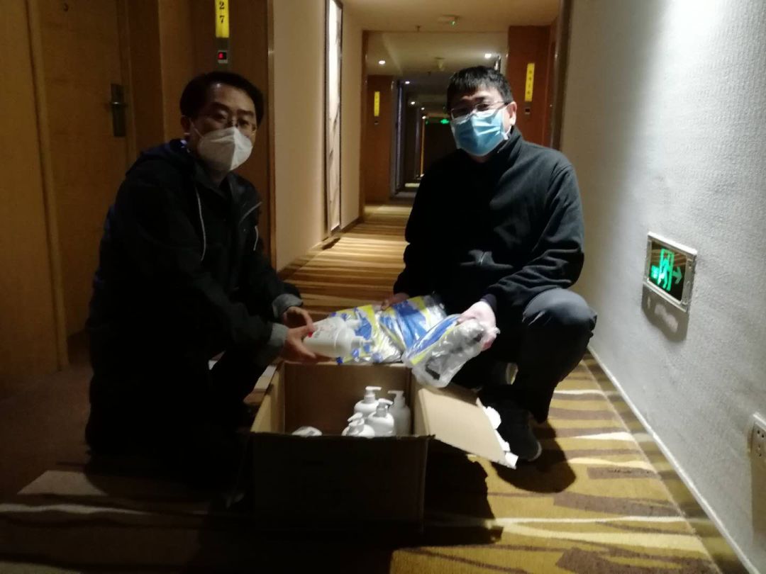 我们刚到驻地酒店,第一件事就是清点物资。各单位携带的物资略有不同,手消毒液、护目镜数量也有差异,我们便相互分享,最终大家在上战场前就凝聚起团结一心、共渡难关的力量,使我们更加有信心去战胜疫情。