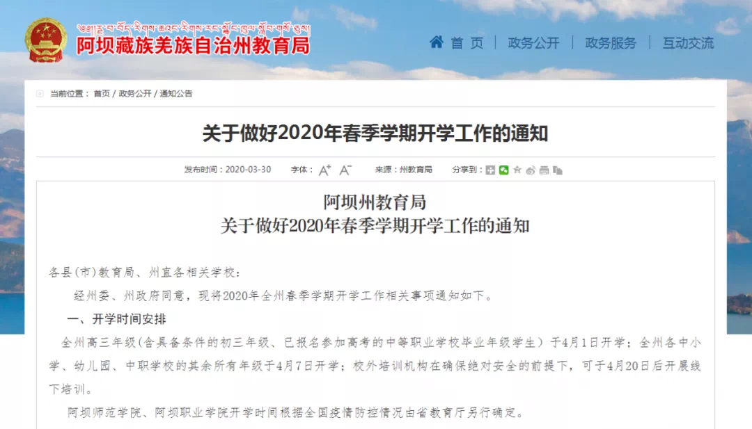 记者从阿坝州教育局了解到,4月1日,阿坝州初三、高三年级正式复课,这也意味着同学们的假期结束了。