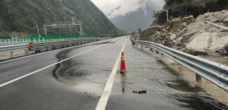 高速公安一分局六大队民警提醒广大驾驶员朋友:目前降雨仍在继续,登溪沟水势暂未消退,关闭的汶川南收费站解除时间待定。行驶过程中,如遇积水路段,需减慢车速,谨慎驾驶。