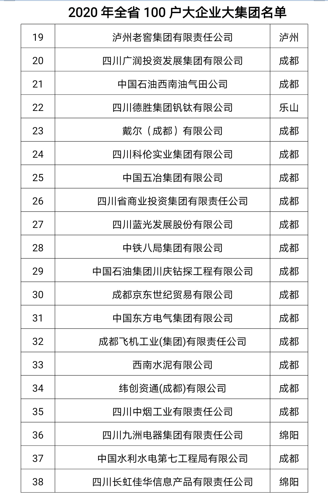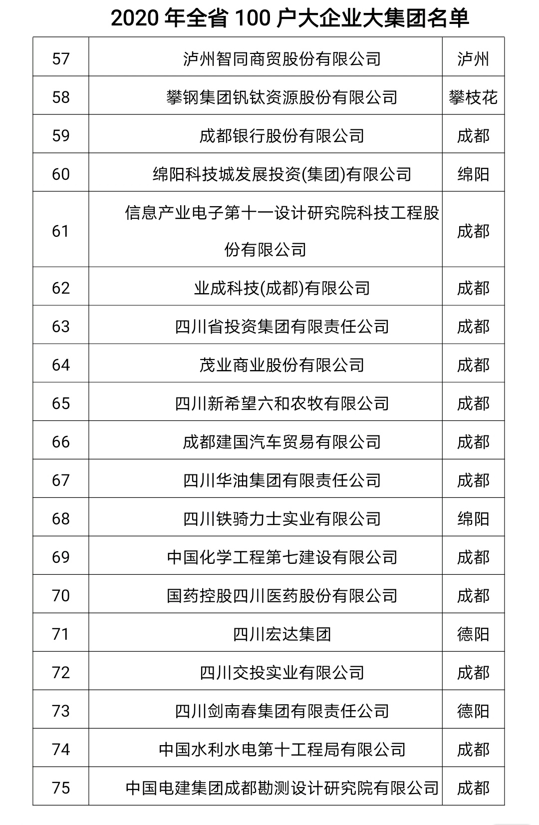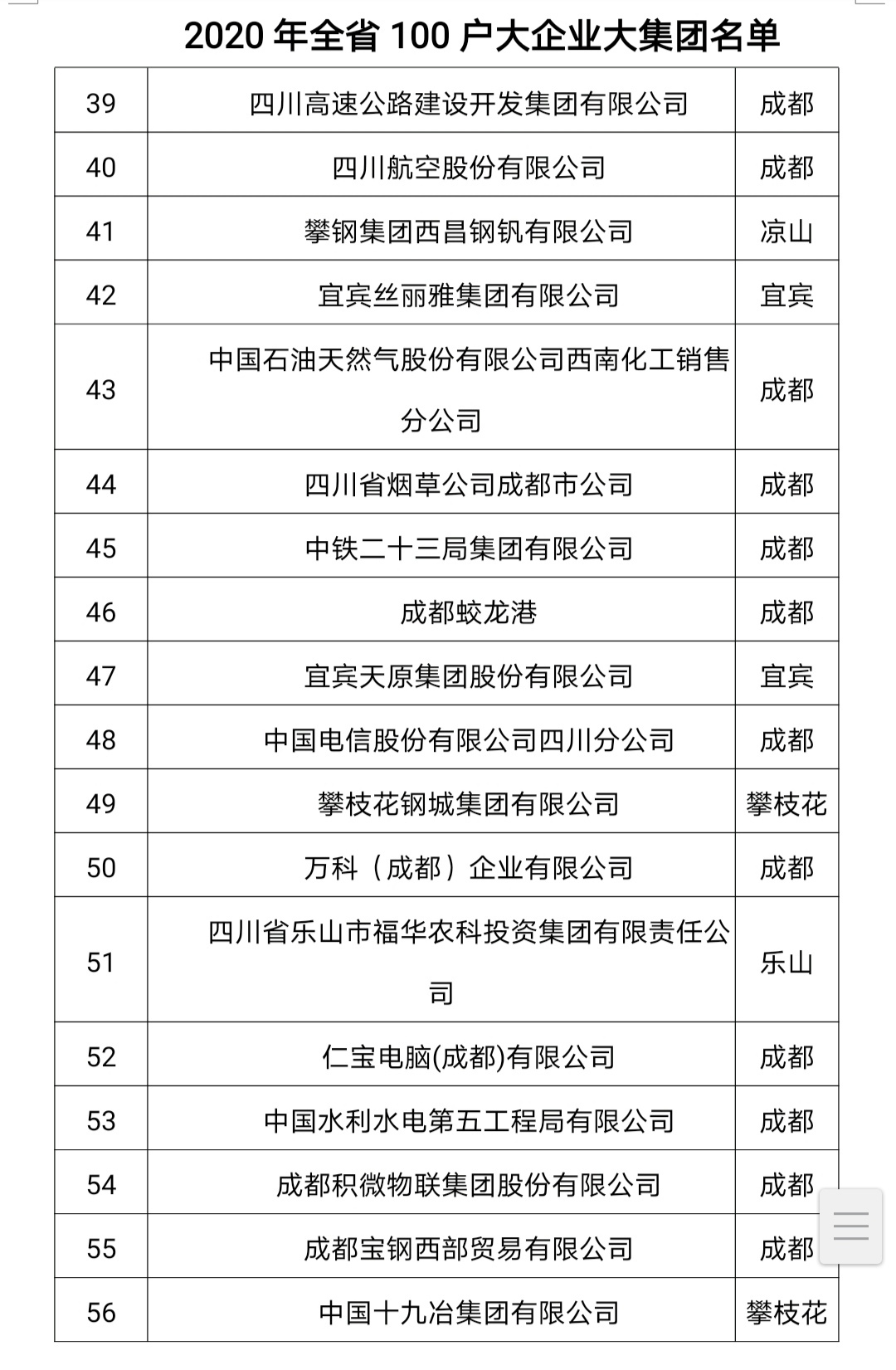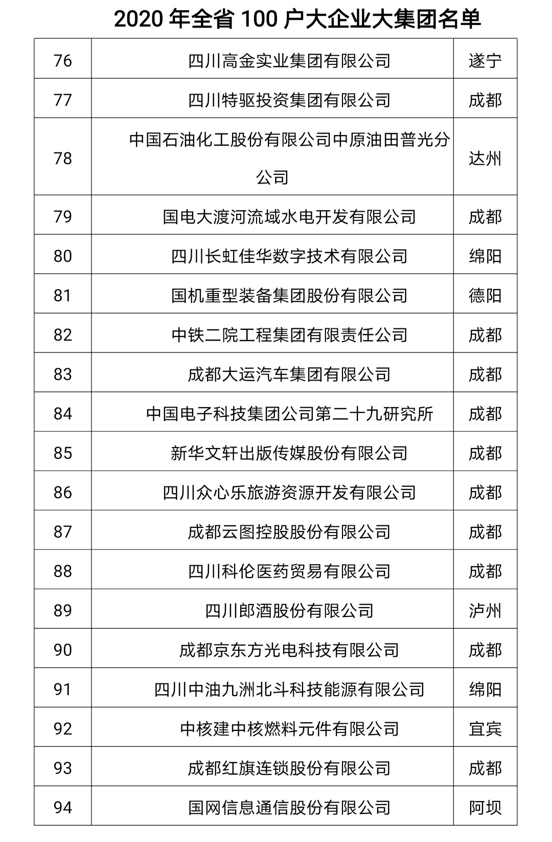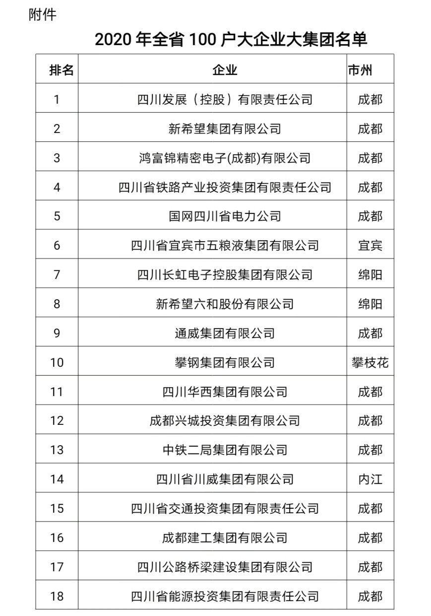 据介绍,按照《四川省培育大企业大集团动态调整实施意见》要求,省经信厅开展了2020年度大企业大集团100户名单动态调整工作。