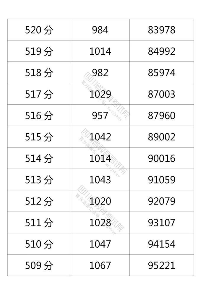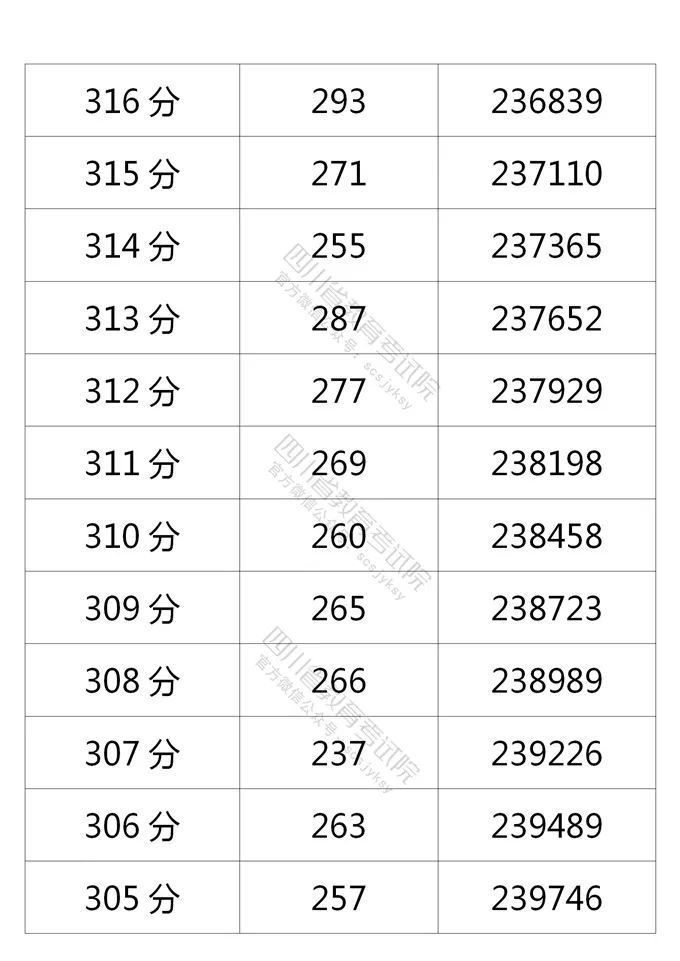 官方发布!四川省2021年普通高考理科成绩分段统计表出炉!