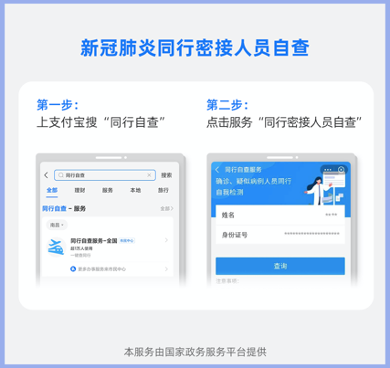 近日,全国出现散发疫情,你是否担心自己是密切接触者?担心是否与确诊、疑似患者同乘过公共交通?目前,看度记者了解到,国家政务服务平台已在支付宝上线了同行密接人员自查服务,用户可上支付宝搜“同行自查”免费查询,最快只需3秒钟,查一查更安心。