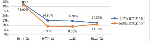 我省民间投资总体保持增长态势,个别市州出现负增长,市州之间民间投资存在水平分化。2021年上半年,全省民间投资同比增长11.7%,比全省全社会固定资产投资增速低2.2个百分点,比一季度回落6.4个百分点;两年平均增速8.1%,比全省全社会固定资产投资两年平均增速低1.3个百分点。民间投资占全省全社会固定资产投资比重为47.6%,比上年同期下降0.8个百分点,比一季度回落0.7个百分点。其中,第一产业民间投资增长31.9%,第三产业民间投资增长11.1%,接近全社会投资水平;第二产业民间投资增长8.9%,工业民间投资增长8.6%,明显落后于全社会投资水平。与全国层面对比,上半年我省全社会固定资产投资同比增速高出全国1.3个百分点,但我省民间投资同比增速低于全国3.7个百分点。