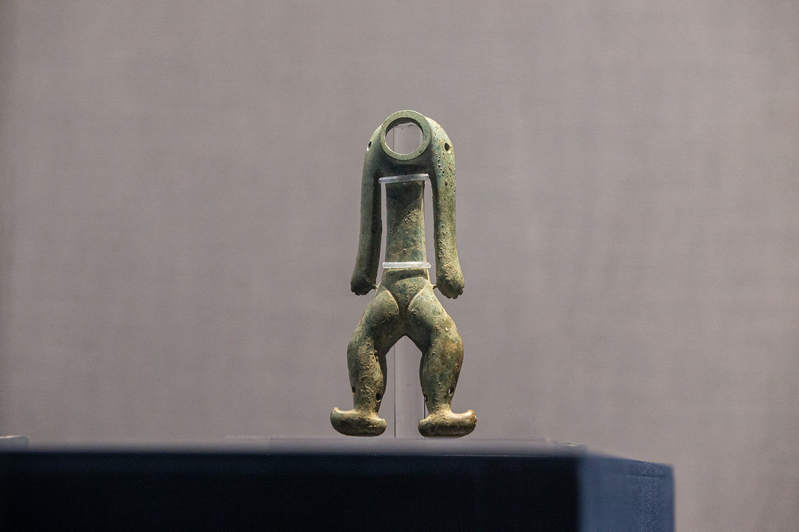 据介绍,此次展览共展出139余件/组古蜀文物珍品,包括金沙遗址博物馆展品76件/组,其中不乏金人面像、蛙形金箔、铜人形器及观众在金沙都难得一见的四节玉琮等珍贵文物;而金沙镇馆之宝——太阳神鸟金饰,则以复制品的方式展出,供观众领略中国文化遗产标志原型的风采。