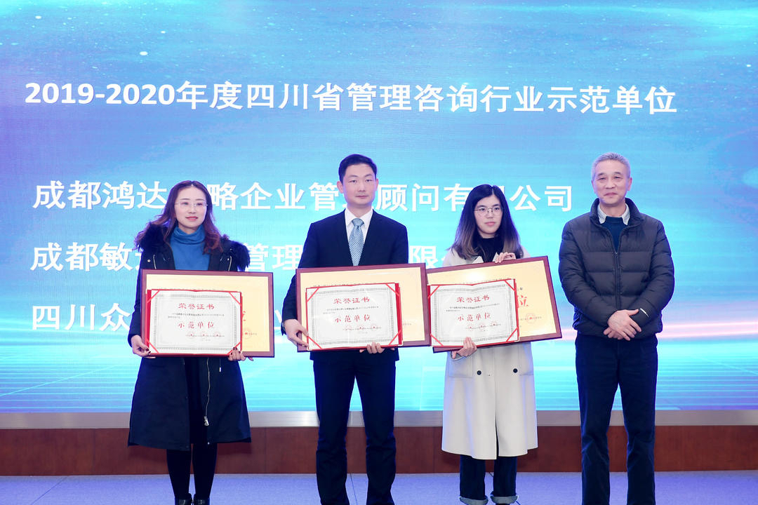 会上,隆重表彰了“2019-2020年度四川省管理咨询行业”先进集体和个人。成都浩睿企业管理咨询有限公司获“2019-2020年度四川省管理咨询行业示范基地”称号;成都鸿达方略企业管理顾问有限公司、成都敏道企业管理咨询有限公司、四川众智云慧企业管理有限公司获“2019-2020年度四川省管理咨询行业示范单位”称号;成都鸿达方略企业管理顾问有限公司合伙人王敏获“2019-2020年度四川省管理咨询行业领军人物”称号;四川创智投资咨询有限公司张斌、唐恒娟获“2019-2020年度四川省管理咨询行业优秀管理咨询师”称号。