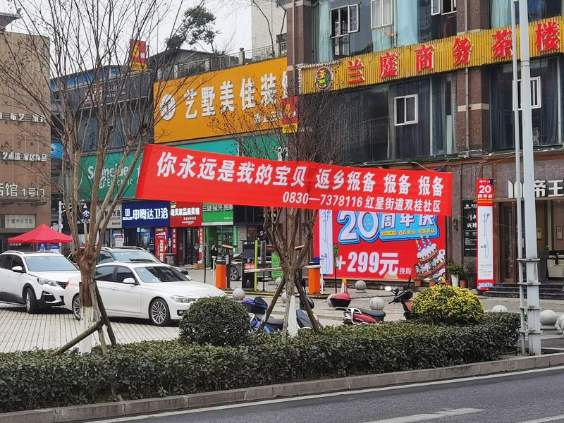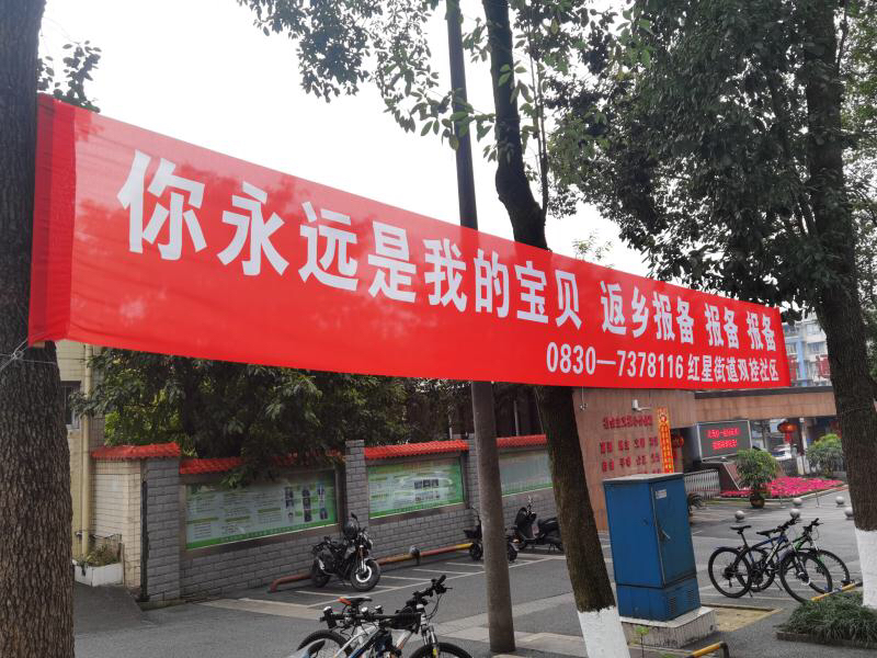 在短短20秒的视频中,四川省泸州市龙马潭区红星街道双桂社区将时下热门的流行歌词巧妙利用谐音改成防疫返乡标语——“你永远是我的宝贝,返乡报备报备报备!”制作成暖心的横幅,悬挂在社区内各大路口,引导返乡人员报备,暖心而俏皮的横幅让人眼前一亮,倍感温馨。