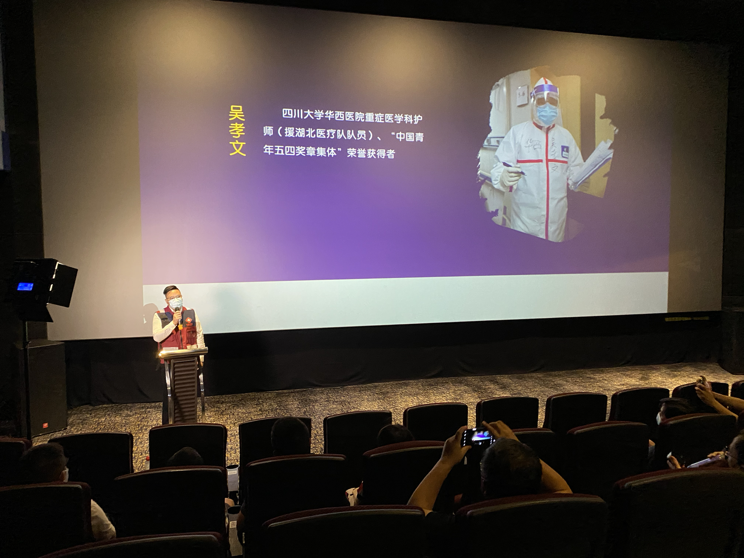 吴孝文、关旭静、邓磊也分别作为本次四川援鄂医疗队的护理、疾控和医生代表上台,分享了他们的战疫故事。在他们的娓娓讲述中,大家重温了这次新冠肺炎疫情当中,我们的医护人员白衣执甲、勇敢逆行,冲锋在抗击疫情的最前线,谱写了一曲曲感人至深的“抗疫”赞歌,引起现场强烈共鸣。随后,记者还在现场采访了关旭静老师,她说道:“我们医务人员其实并不像大众觉得的,一副冷脸然后冷冰冰的样子,我们也有喜怒哀乐,我们也很喜欢用表情包,但是以前就没得我们专用的表情包,而这一套医护人员的表情包,让我们觉得非常的亲切,那么也希望和患者之间通过这套表情包建立,更加亲近的关系,因为其实只有医生和患者建立了一个良好的信任和互相认可的这么一个关系,我们医护人员才能更好地为患者服务。”