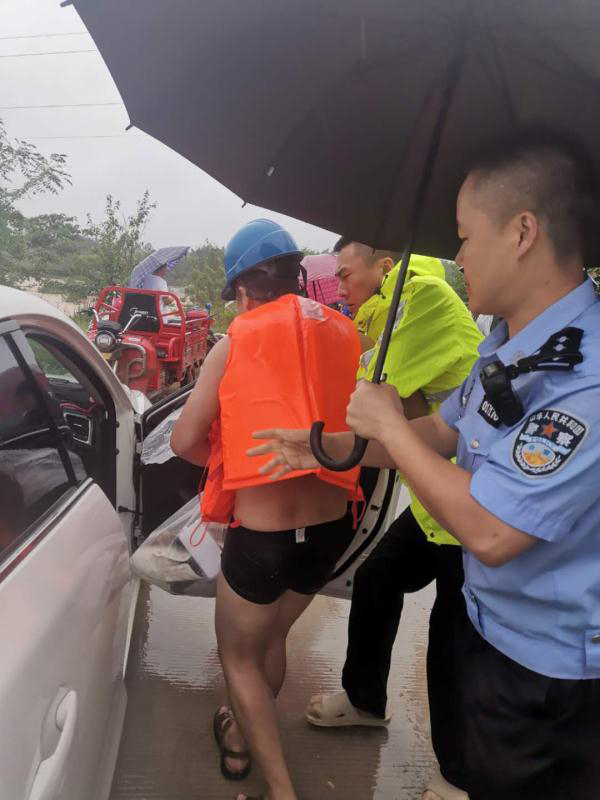 接警后,大面派出所立即安排警力前往救援。受暴雨袭击,出警沿途多处路段积水较深,警车无法通行前往。见此情况,派出所所长贾波立即带领民警刘旭、赵勇和辅警郑志伟、陈龙一行五人,冒着暴雨步行跋涉至该工地。