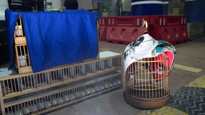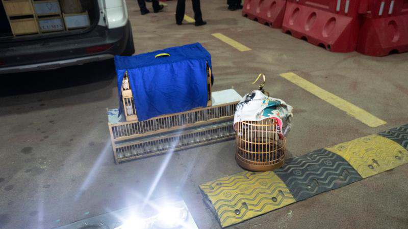 2月14日,成华公安就破获了一起涉嫌非法收购、运输画眉案。成华区分局巡警大队巡逻三中队民警王亨告诉了记者当天晚上的情况:“2月13日22时许,我组民辅警在成南高速,依法对一辆SUV越野车进行检查时,发现驾驶员神情紧张、口齿不清,我组民辅警立即就做进一步检查,并在车辆的后备箱内发现了大量的鸟笼,笼内有活体鸟类24只。”
