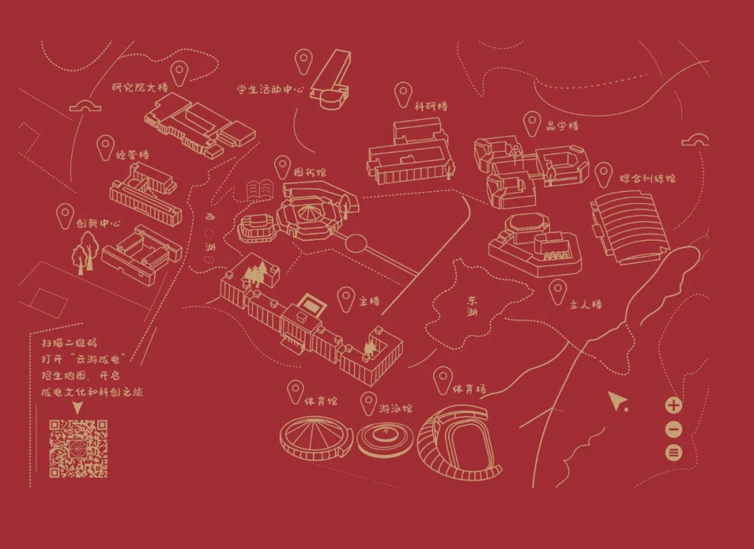 扫描左下角二维码,进入“云游成电”实景VR地图,就能轻松地“云游”校园!