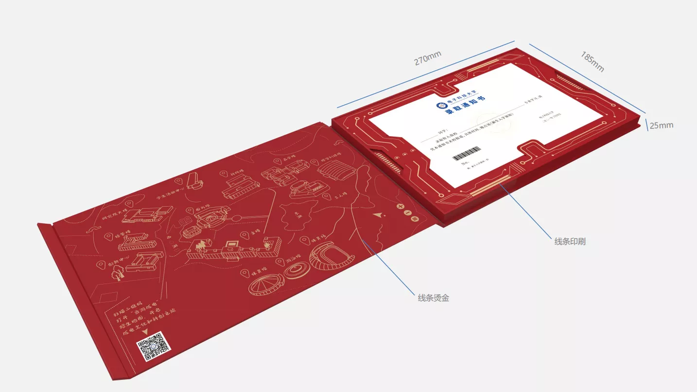 从外观上来看,录取通知书整体为一个精美的纪念礼盒,人文、科技元素并重,集实用性与收藏性于一体,样式十分喜庆、独特。