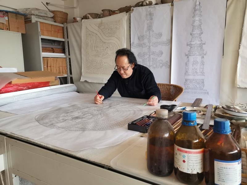 成都文物考古研究院首席考古绘图师卢引科,从业近40年,为数十部考古报告、精品图集、专刊绘制约万余幅插图。此次展览展出他所绘制的金沙遗址和四川其他时期文物绘图以及再创作成果——在详实的考古资料基础上,运用辅以娴熟的绘图技术,复原遗迹最初的样子,堪称“科学与艺术的完美融合”。