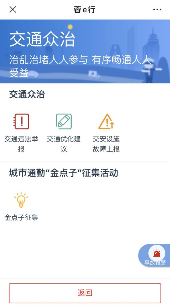 关注“蓉e行”微信公众号,进入主页面后点击“交通众治”专区,再进入“金点子”进行参与。