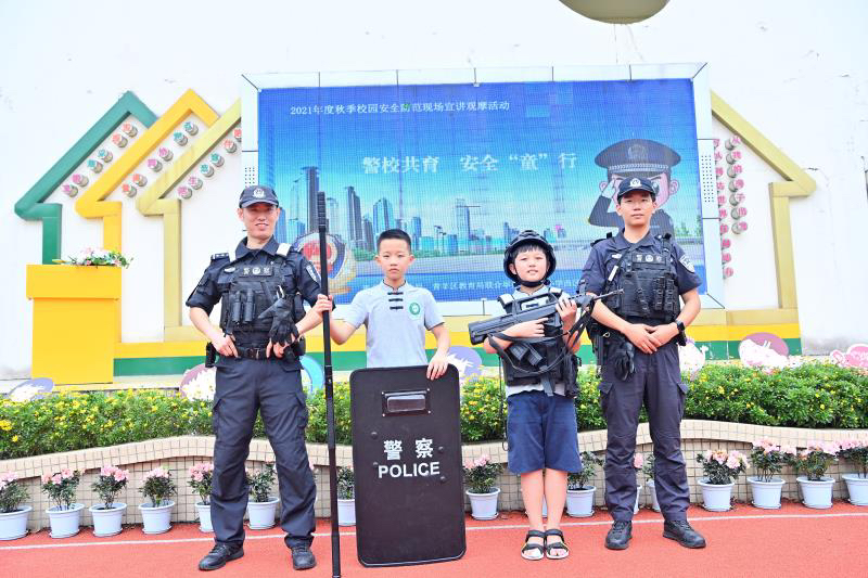 9月1日开学当天,成都市公安局、青羊区教育局在草堂小学西区联合举办了主题为“警校共育、安全童行”安全防范入校园活动,给小朋友们带去了安全防范、交通出行、禁毒防范等安全知识,通过现场警用装备展示和应急演练处突,进一步拉近了拉近了民警与小朋友的距离,有效动员学校师生主动参与治安防范,提升了师生的安全意识与自防技能。