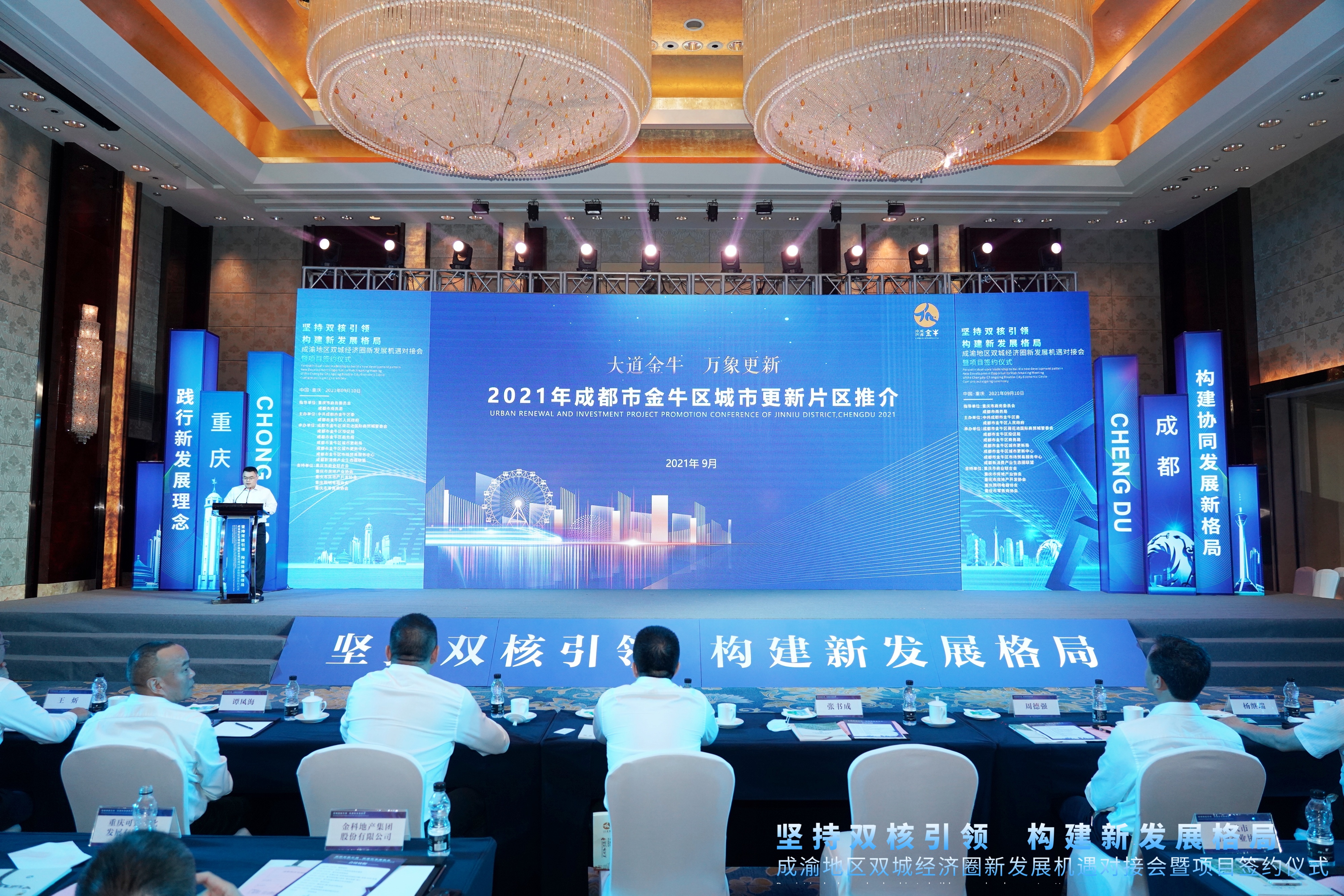 会上,金牛区相关负责人表示,成渝地区双城经济圈战略提出一年多以来,金牛区高起点构筑“天府成都北城新中心”,高水平打造“一中心一枢纽两高地”,加快提升金牛在全球视野下的国际影响力、要素集聚力和人才吸引力。荷花池国际商贸城管委会负责人详细介绍了金牛区区情,并对“蓉北商圈”进行了推介,发布投资机会清单38条,涉及城市有机更新、配套设施建设、产业升级等多个领域。