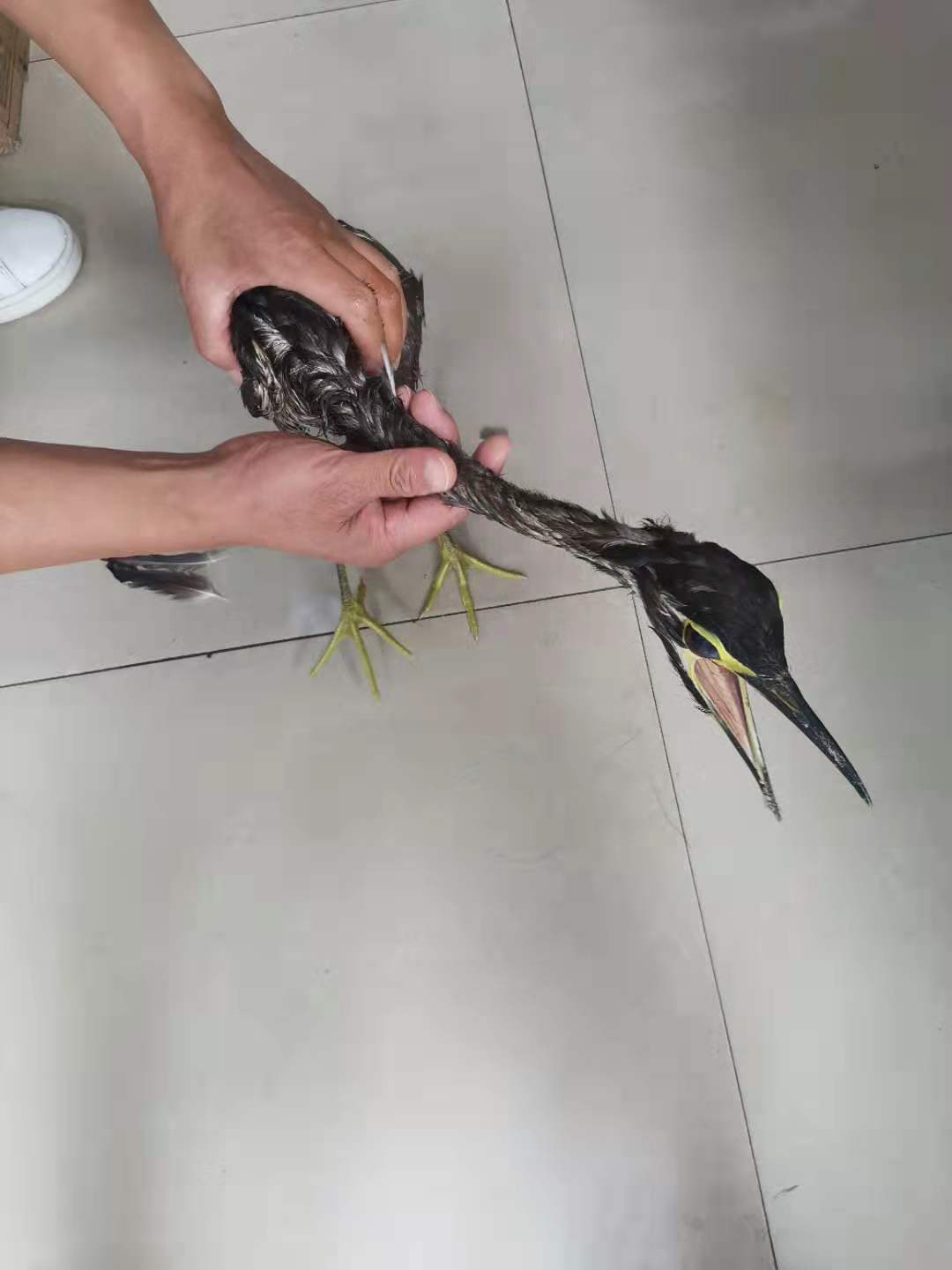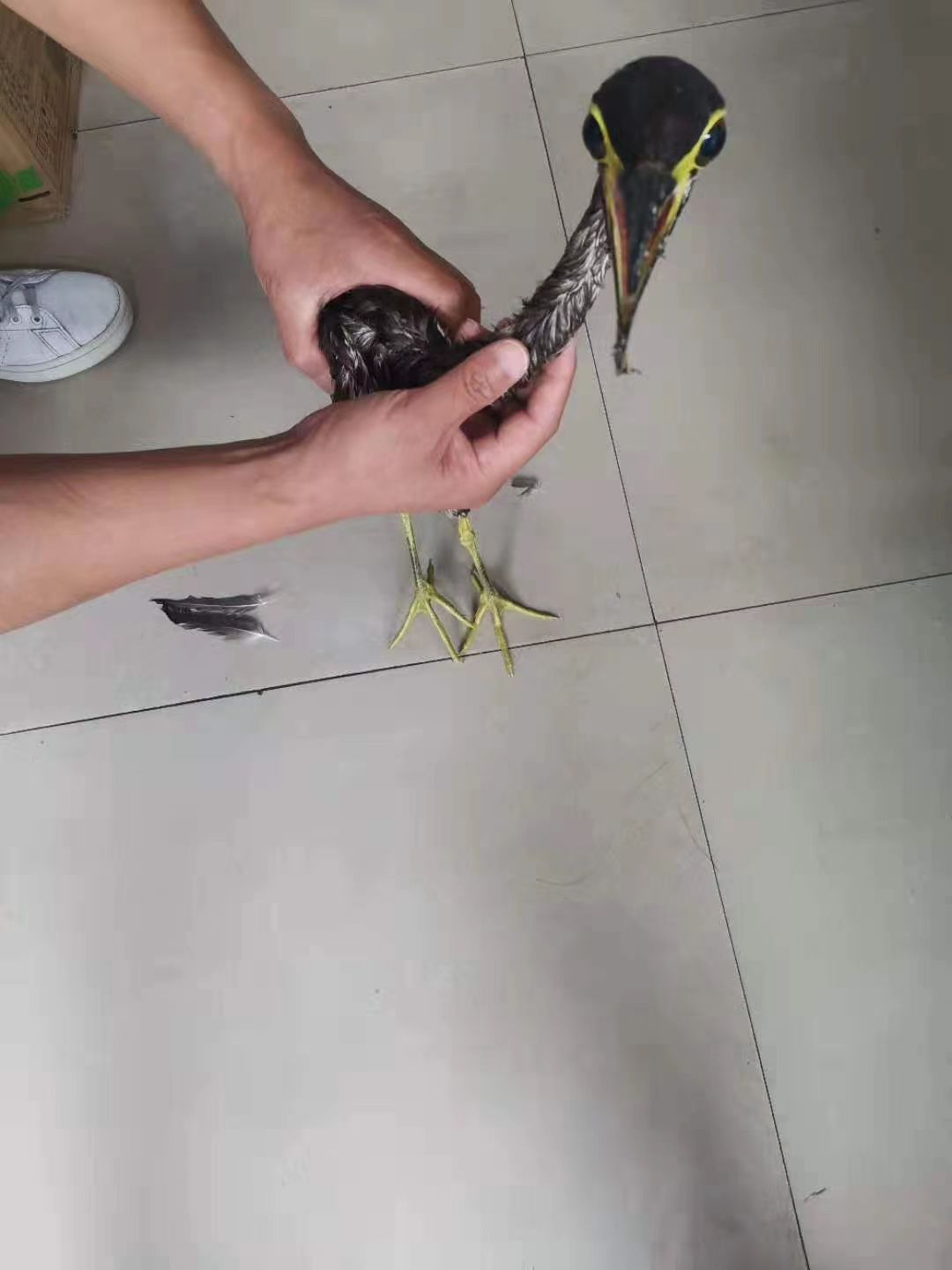 这只海南鳽被发现时全身羽毛沾湿,幸运的是经过森林公安工作人员仔细检查后,发现它身上没有伤病,属于健康状态。于是海南鳽当日就被放归回适合的生境。