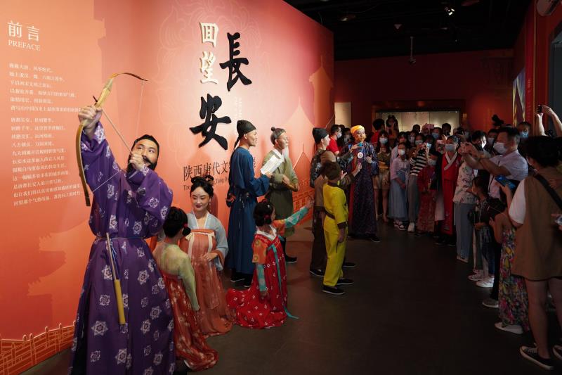 据悉,这是金沙遗址博物馆为观众准备的第二份中秋大礼——以金沙正在热展的“回望长安——陕西唐代文物精华展”创作的首个沉浸式戏剧导览。该导览由4名金沙讲解员,1名社教人员,1名志愿者,以及4名平均年龄年仅9岁的小小讲解员组成表演团队,以“导游”唐知许的讲述为主线,通过故事演绎、场景表演、现场互动等生动的形式,再现唐朝人的衣食住行。