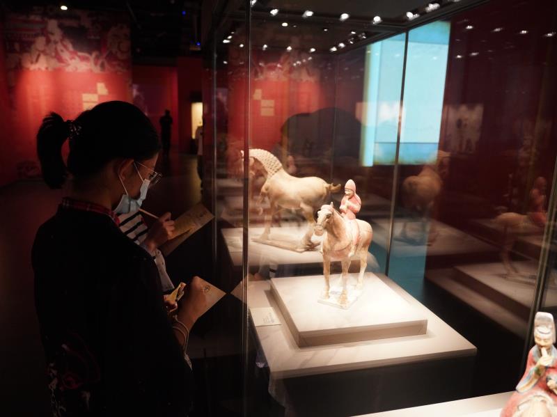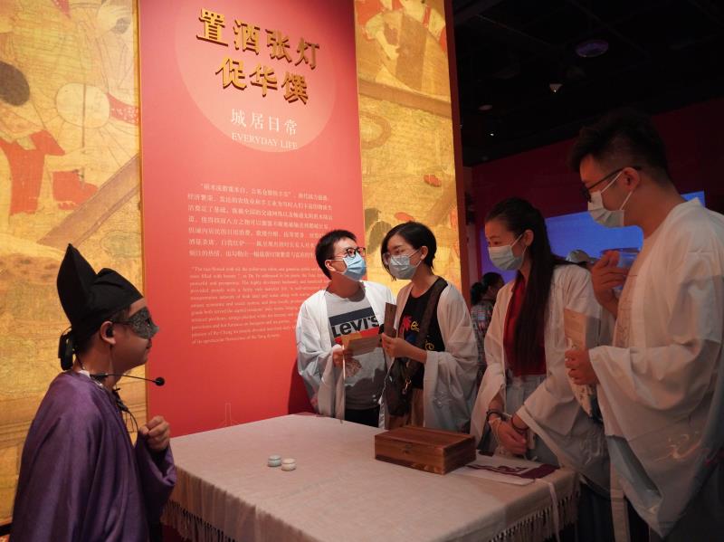 在2个小时的游戏过程中,玩家们频繁地穿行于展厅之中,深入了解如开元通宝、银波罗子、白瓷象座昆仑奴、彩绘骑马胡人俑等数十件文物,认真阅读和记忆展板上的诗句,跟随NPC演员学习唐代的妆容和礼仪,欣赏演员带来的唐代典型舞蹈胡旋舞。