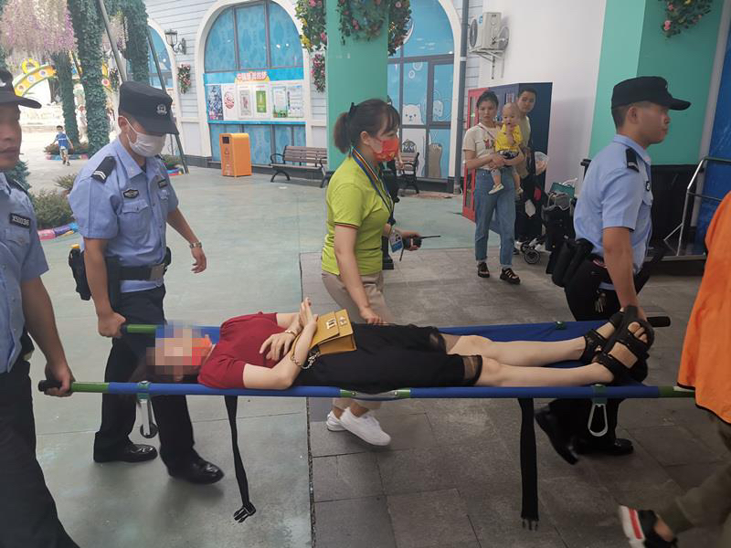 10月1日上午11时30分许,极地海洋公园鲸豚馆外一名女子突然晕倒,正在附近执勤的通济桥派出所民警立即与现场热心群众对其进行了简单施救,并同时拨打了120。随后,在海洋公园工作人员的协助下,民警们将晕倒女子用担架送至园区游客中心休息室等待医务人员到来,并联系上其家属。目前,女子已无大碍。