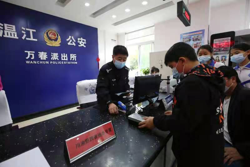 “成都温江公安分局作为全省改革试点单位,今天率先在全省成功受理了3位贵州小朋友的申领业务。从今以后,在温江生活工作且做了居住登记的贵州、重庆籍群众再也不用往返奔波,可以直接到分局申领身份证件。”温江公安分局办证中心负责人朱昱瑾介绍说。