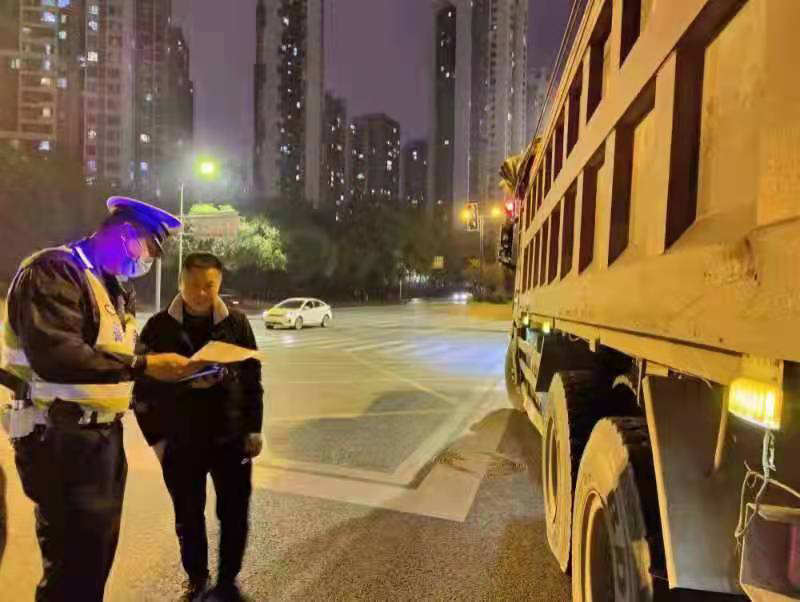 近日,成都市公安局交通管理局联合市住建交局、市城管委等部门对建筑垃圾运输的源头工地,开展建筑垃圾运输车辆超载超限专项检查。在锦江区某在建工地,联合检查组对工地驶出的车辆采取逢车必查的方式,严控车辆超载超限的行为发生。看度记者在现场看到,检查组人员对受检的每一辆车进行登车检查,对存在超载超限嫌疑车辆要求立即卸货或现场转运,确保不存在超载超限的行为后方可上路行驶。同时,检查人员提醒车辆驾驶员在道路行驶时,严禁出现违反交通信号灯、随意变道、不停车让行等交通违法行为。