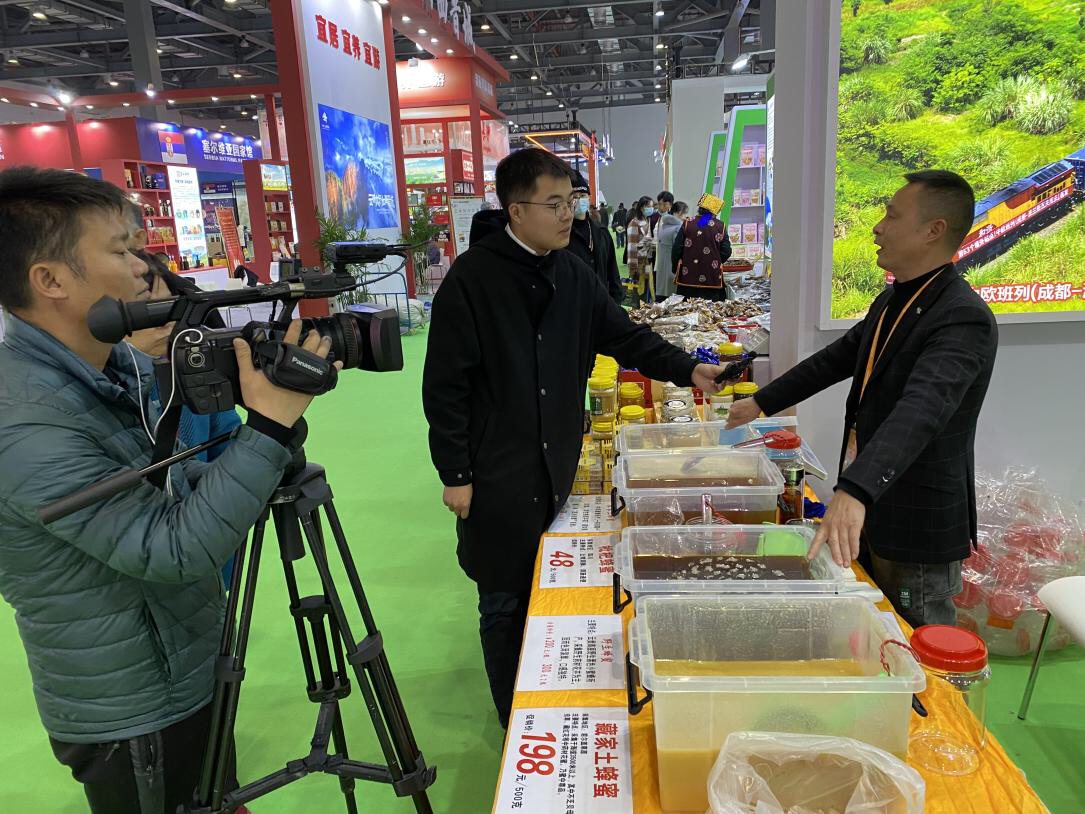 以“成都造成都味”为主题,展馆内聚集了众多出自成都的国家地标产品。包括“川菜之魂”郫县豆瓣、云桥圆根萝卜、唐元韭黄、蒲议米花糖、文君茶叶、三匠苦荞、川池白酒、核桃软糖、山妹子蜂蜜和国家一村一品示范村产品邛崃绿佳康猕猴桃等生鲜农产品及腊肉香肠等二十多种成都优质特色农产品,吸引了众多客商前来洽谈。在试吃环节,老牌的成都市新兴粮油和简阳万事达合作社联袂协作,现场煎炸制作的海藻、鸡蛋饼浓香扑鼻,展台被争相品尝的观众层层包围。