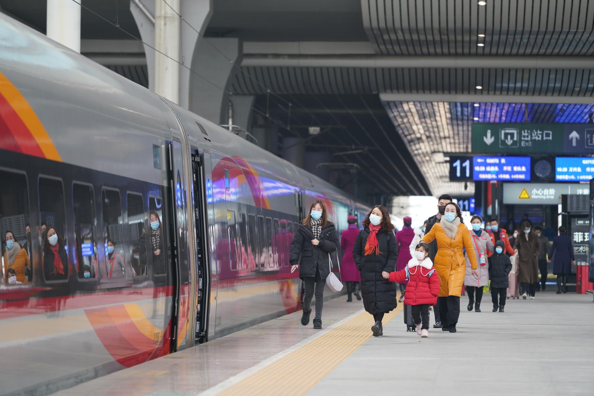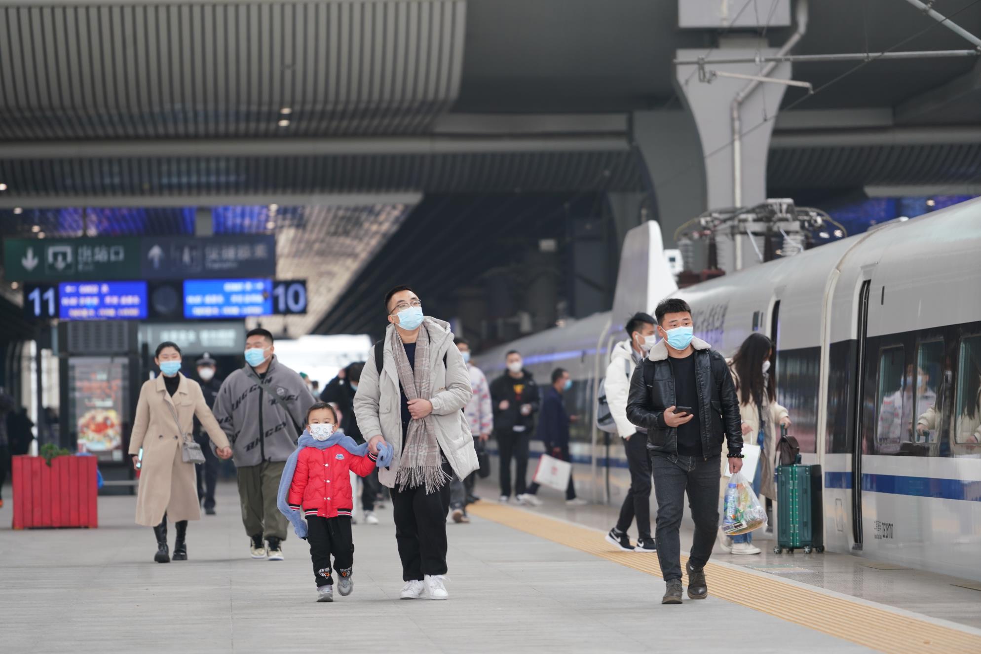 元旦假期期间,成都局集团公司加强组织领导,增加售票窗口、延长售票时间,加强旅客购票、候车、乘降组织引导,提升基础服务水平,加强重点旅客服务,持续改善旅客出行体验。与此同时,严格落实属地防控要求,加强站车常态化疫情防控,强化进出站测温验码、通风消毒、卫生保洁等措施,引导旅客全程佩戴口罩、减少人员聚集,让旅客出行更加安心、放心。