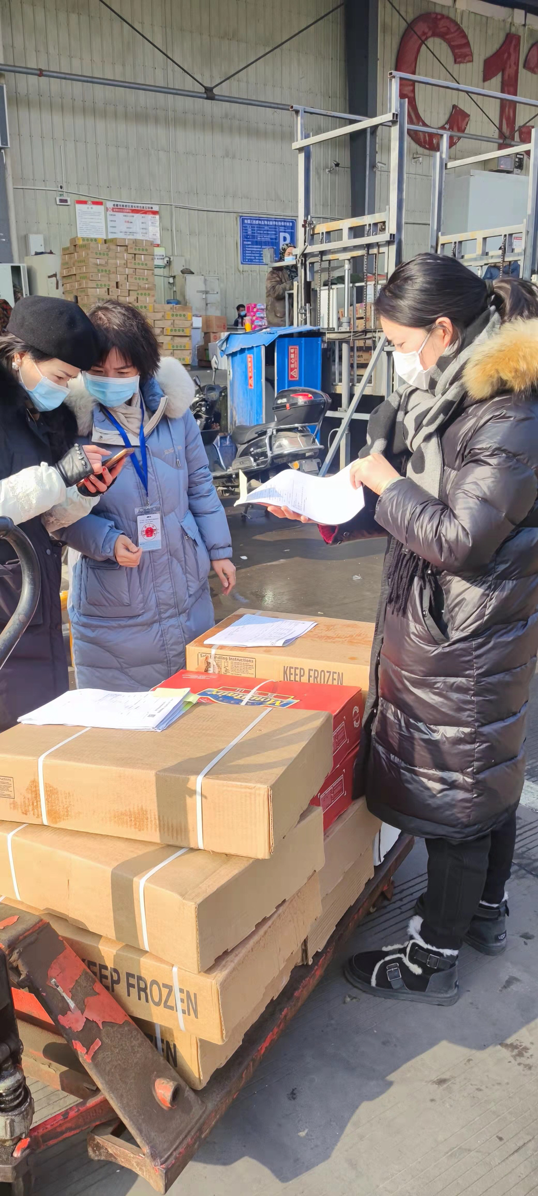 郫都区市场监管局还与成都市交通运输综合行政执法总队、成都市公安局郫都区分局、郫都区卫生健康局联合,于成灌高速公路成都收费站(成都出口进城方向)进行冷链食品运输防疫查验夜间联合执法,并负责按规定处置进口冷链食品“四证”不全或相关信息与实际货物不符等情况。