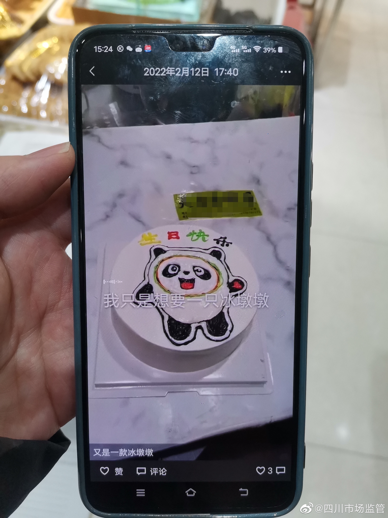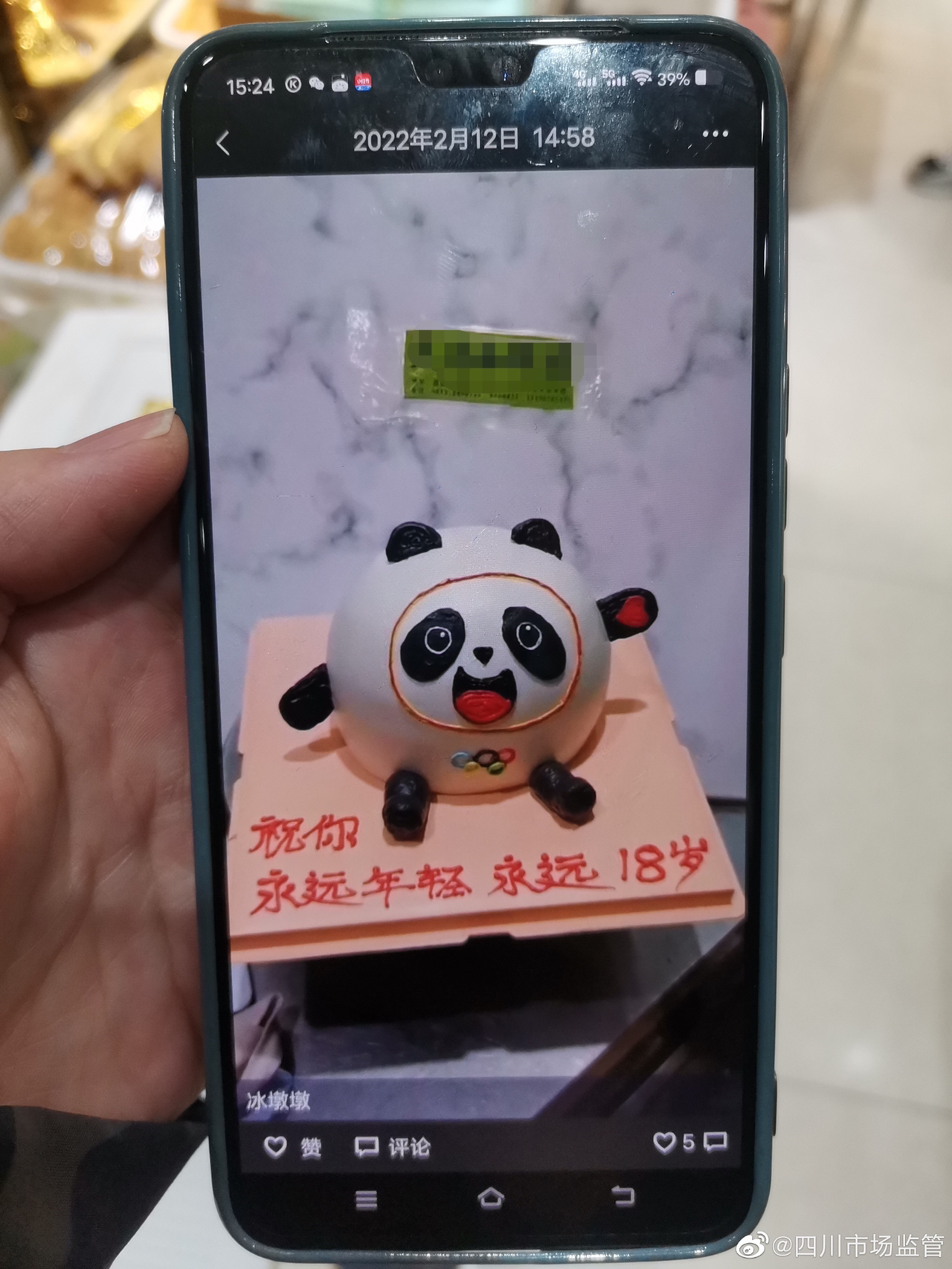 2月16日,自贡市大安区市场监管局接投诉举报称:一蛋糕店店主在其微信朋友圈发布有冰墩墩样式的蛋糕图片,该局执法人员随即前往该蛋糕店进行核实,发现该店店主及店员在其朋友圈发布带有该店标识的定制冰墩墩蛋糕图片,且印有奥运五环图案,附文“又是一款冰墩墩”和“冰墩墩”。经查,当事人通过微信已售卖出两个冰墩墩蛋糕。