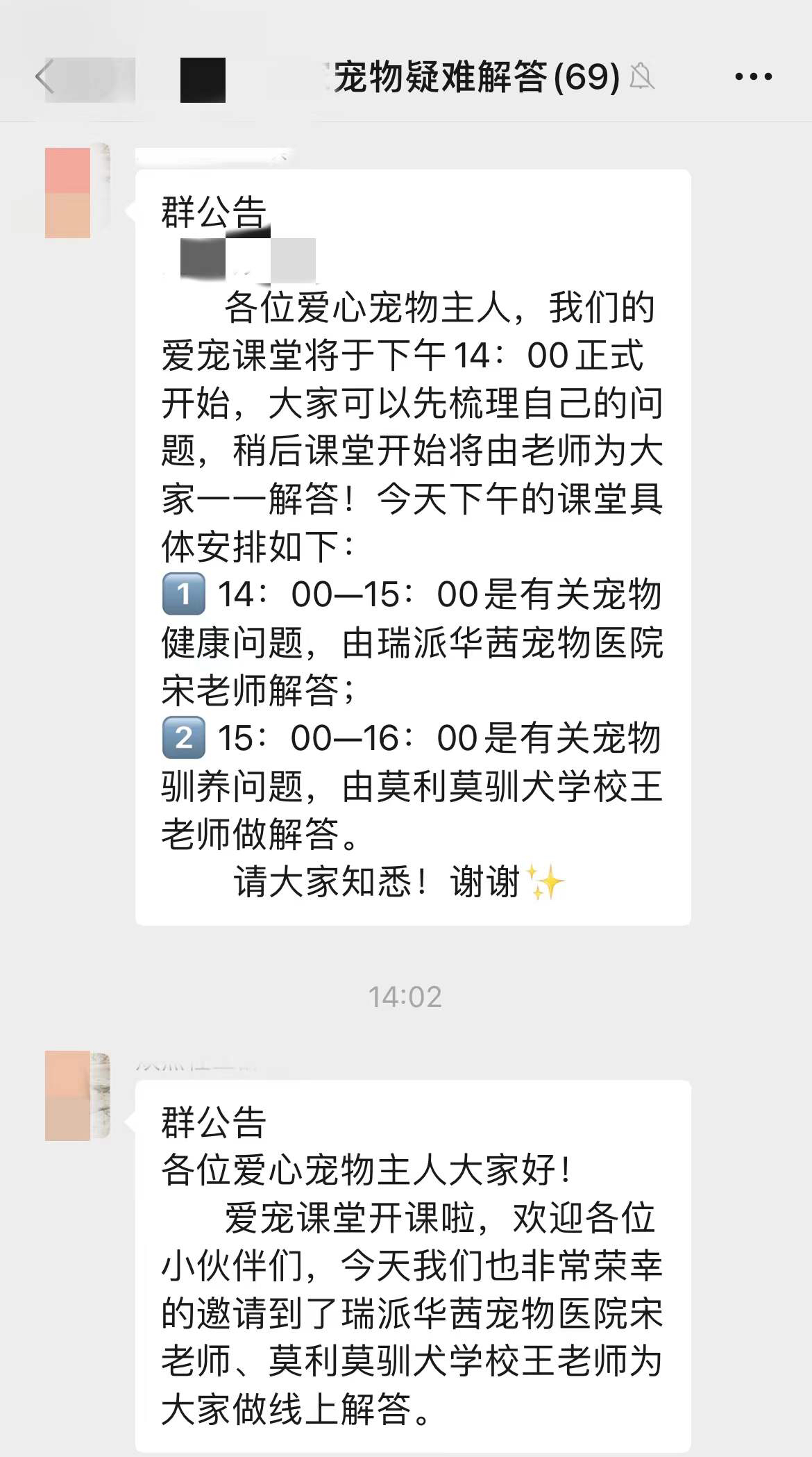 “欢迎各位‘家长们’,今天我们邀请到了瑞派华茜宠物医院的宋老师和莫利莫驯犬学校的王老师为大家做线上解答。大家可以先梳理自己的问题,稍后由老师为大家一一解答。”2月23日下午14时,爱宠课堂正式开课,据了解,每日14时至15时解答有关宠物健康问题,15时至16时解答有关宠物驯养问题,老师们将围绕隔离宅家期间宠物的护理、嗅觉、精神、生理、社交等多类需求,带领各位“家长”共同参与到互动学习中来。