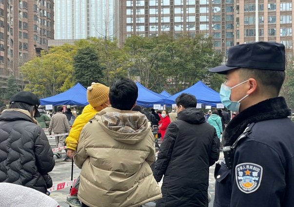 支援流调工作后,曹毅回所立即写下了疫情请战书,根据前几轮防疫工作期间值守核酸检测点总结出的工作经验,曹毅主动要求加入青年突击队,积极参与派出所辖区核酸检测点值守工作。20日至今,曹毅先后在派出所辖区无国界、大有智慧、新希望、蜀都中心、润来金座等7个核酸检测点位,1个临时封控区域和1个封控区域参加过值守,工作时长累积长达80个小时,上万名群众在他和社区及医务人员的密切配合下高效有序地完成检测,充分发挥了党员民警先锋模范作用。