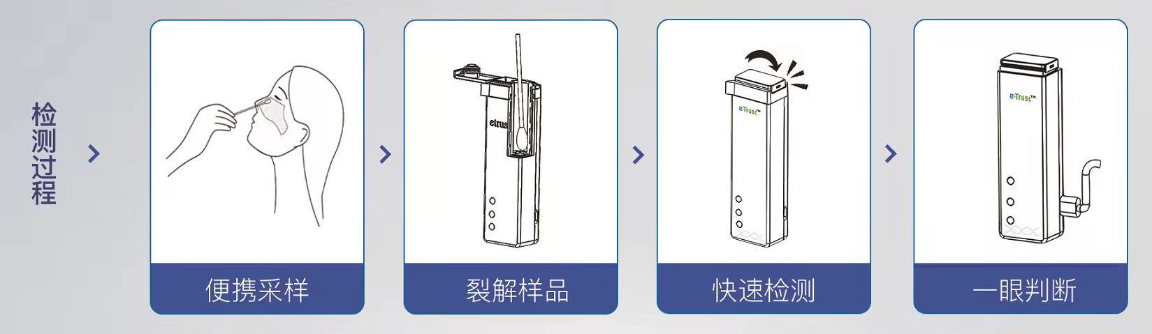 “没有医学背景的人也可以轻松使用。”据介绍,大家在检测的过程中,除采用前鼻拭子采样放入卡盒(“样本进”)盖上密封帽后,无需进行其它操作,等待30分钟左右,由卡盒指示灯显示检测结果(“结果出”)。