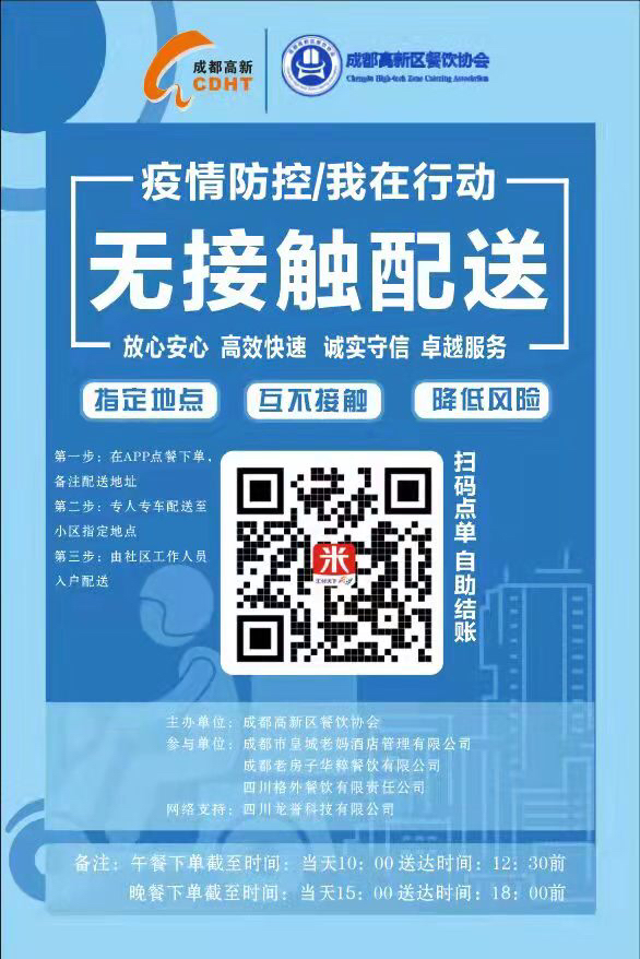 据悉,此次为封控管控区提供专项订餐服务的均为高新区大型连锁品牌企业,推出的多为企业经典招牌菜,餐品价格全面低于市场价。通过“汇来米”小程序,居民可以实现一键下单,餐品由专人专车配送。为保障服务质量,成都高新区餐饮协会统一制定完善的餐饮服务保障方案,配送全程按照疫情防控和食品安全操作规范要求,在各个环节做好消毒消杀和安全防护。