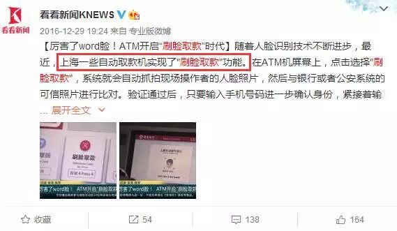 当然,农行并非第一个“刷脸取款”的银行