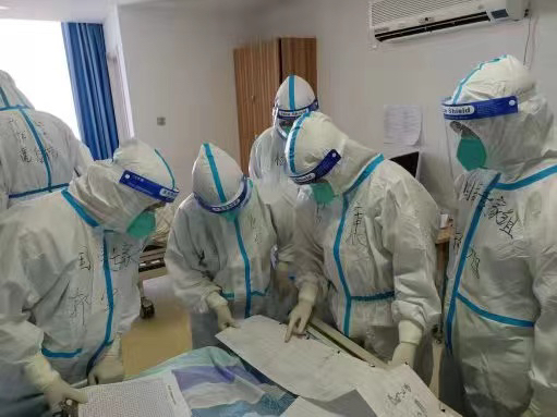 抵达目的地,康焰院长带领郭军、陈佰旭、杨广强进驻吉林医药学院附属医院,负责该院6个病区的新冠患者救治方案制定,重症患者的筛查和管理,指导该院梳理相应的工作流程。