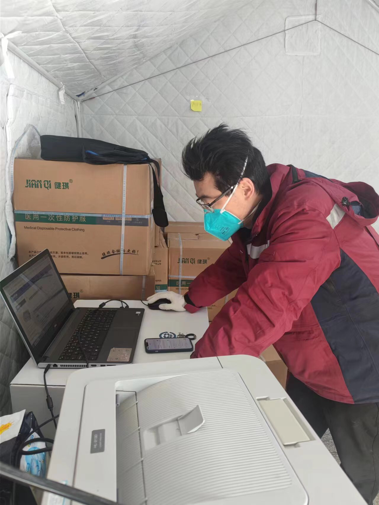 面对工作多、任务紧,人手少的情况,保障组迅速调整,快速适应。迅速熟悉四十余种物资耗材,梳理完善流程,理顺签收、消杀、搬运、分类放置、分发和物资申领等工作。本着足额、精准、节约的原则,科学测算每日物资需求,让医护人员更加安全、放心地投入到一线工作中。为了将防护物资第一时间发放到一线医务人员手上,三名队员要完成消杀登记入库工作,面对动辄数十种、上百件的物资,大家全都自己动手搬运,即使是凌晨两点负十度的低温,但凡有物资配送和大风、大雨情况等突发情况的时候,他们都会第一时间到现场,没有一个叫苦叫累,手冻麻了捂一捂,瑟瑟发抖忍一忍,为的都是确保一线医务人员的物资充足。
