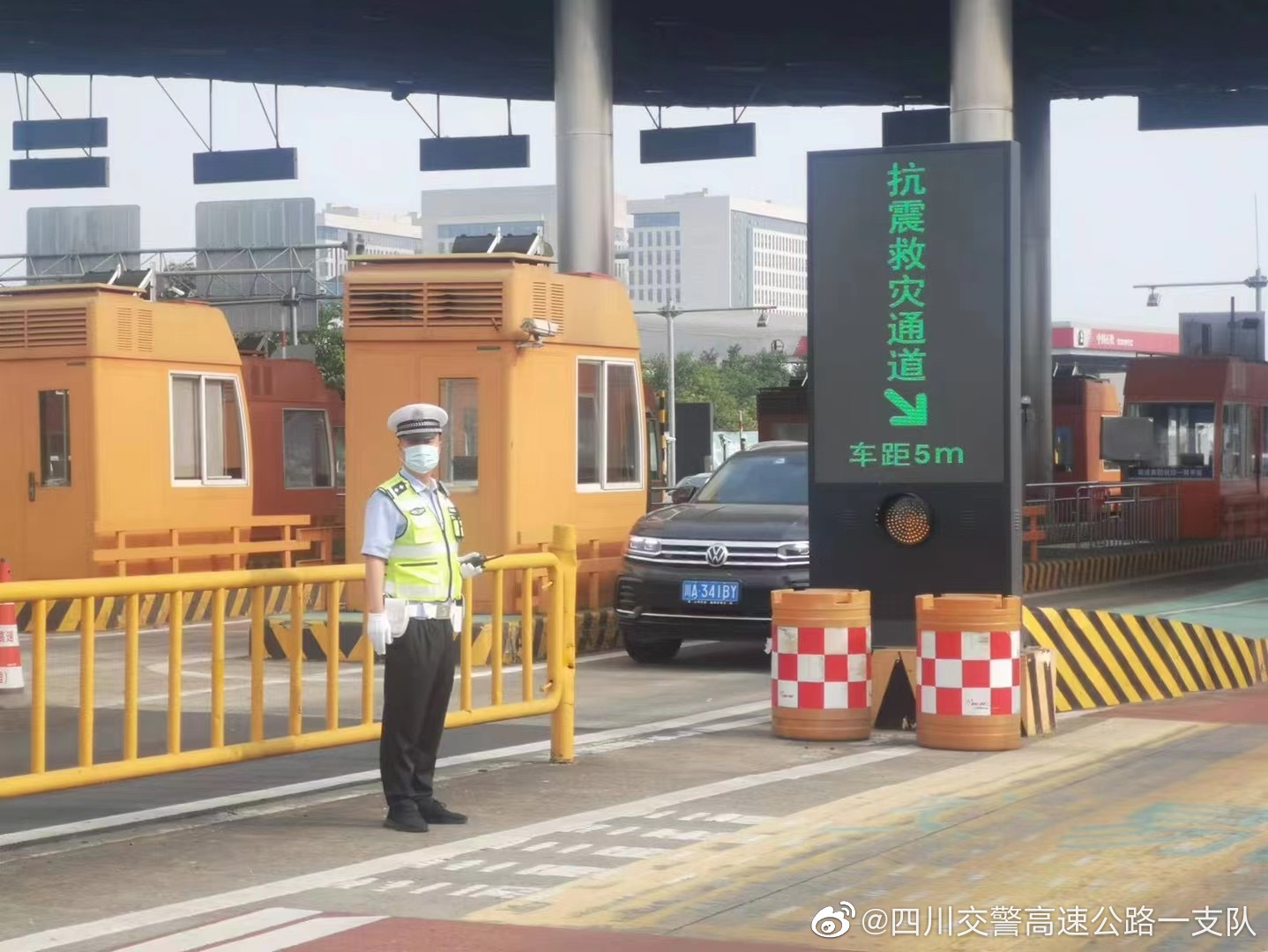 1日19:40消息 公安交警已在雅安多功收费站开辟绿色通道 第一批救援车队已顺利通过
