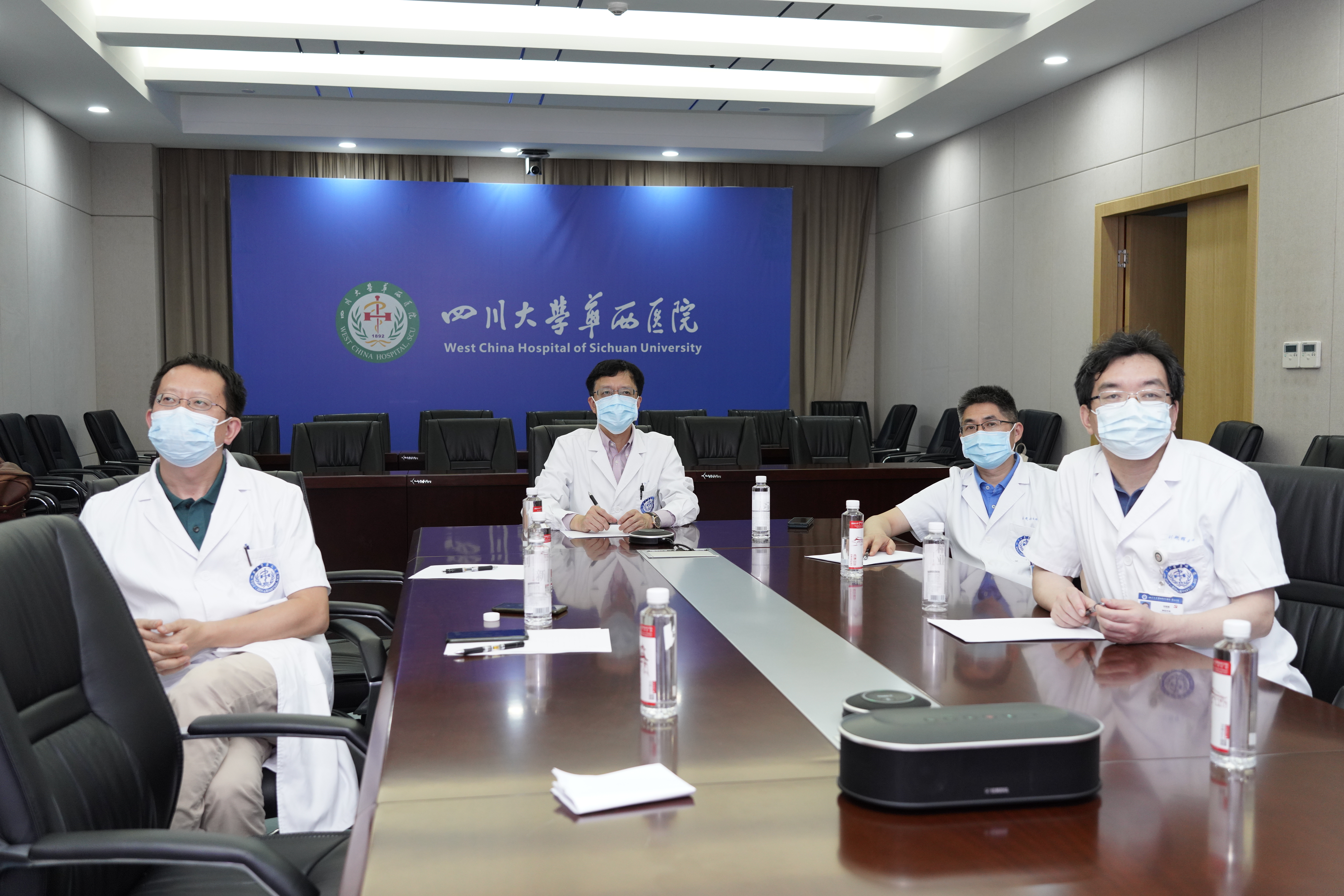 6月2日22:20,四川大学华西医院吴泓副院长带领骨科王光林副主任、神经外科刘艳辉副主任、ICU张中伟副主任与雅安市人民医院进行地震伤员远程会诊。