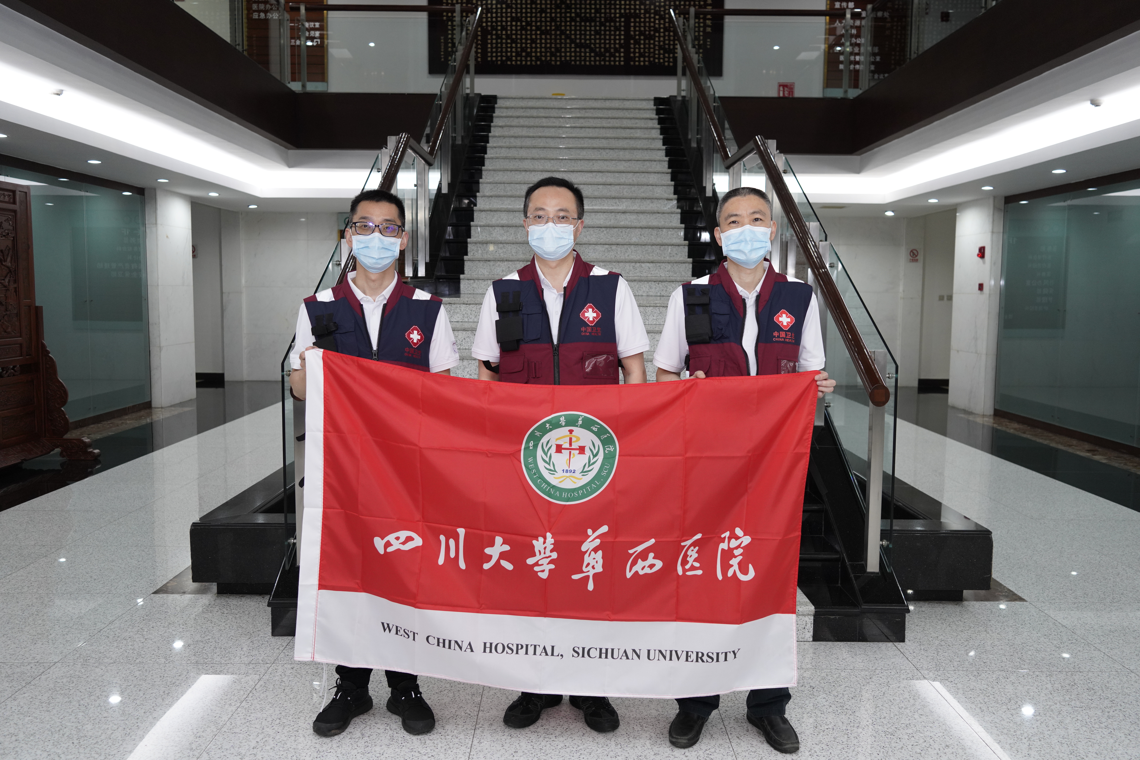 23:00,四川大学华西医院受命组建医疗救治专家组前往雅安市人民医院,对地震危重伤员进行指导救治。专家组组长为重症医学科主任金晓东主任医师,组员为神经外科杨朝华副主任医师、骨科龙成副主任医师。接到出征命令时,龙成医师正在华西天府医院的骨科手术台上,手术结束后,他立即驱车返回本部,与队员汇合后一同前往雅安。