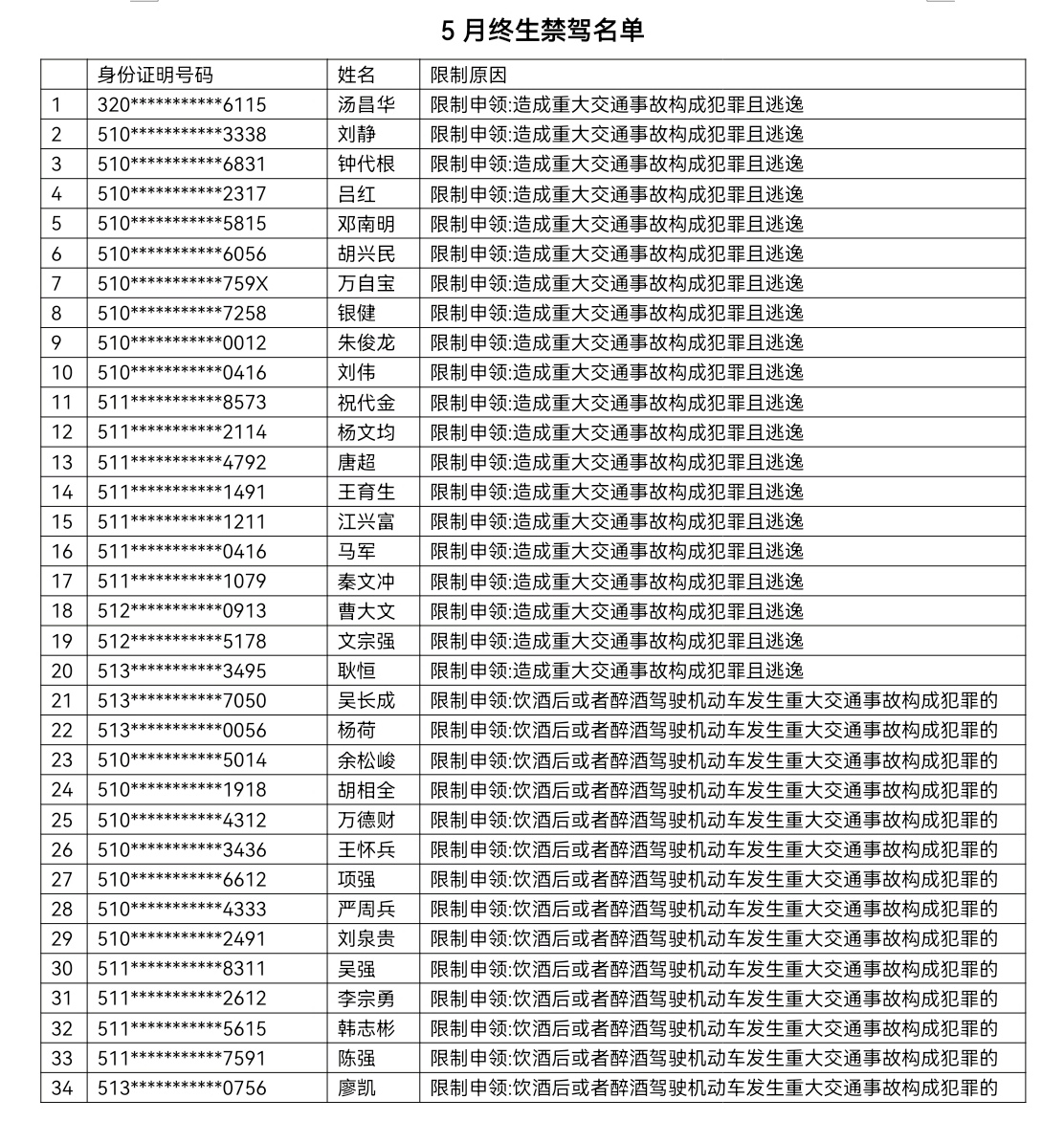 最大63岁 最小22岁!四川公安交警公布5月终生禁驾名单