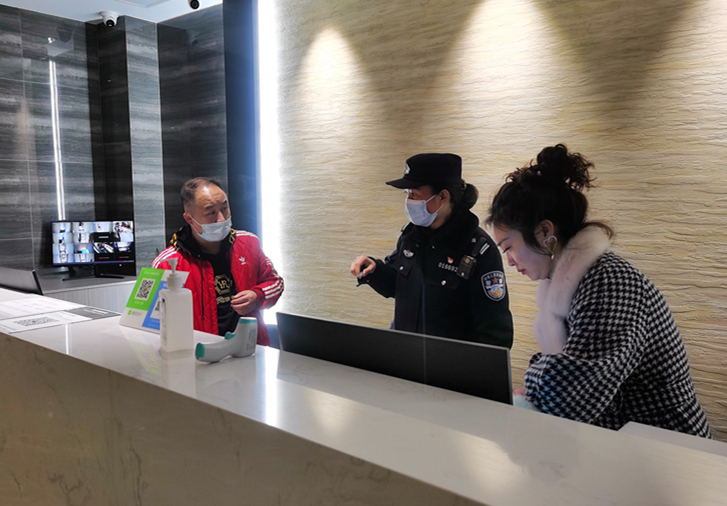 同时,杨静前往辖区六和佳苑小区查看该小区疫情防控情况,检查中与疫情防控工作人员进行了交谈,指出要对小区重点区域春节返乡人员做好人员登记,同时做好消杀工作,并做好自身防控,疫情防控工作人员对民警的指导表示感谢,相互致以新春祝福。