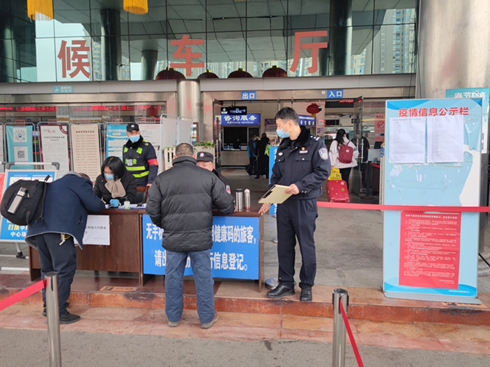 “春运期间,华阳客运站人流量比较大,你们一定要充分重视,场所应急疏散预案、突发事件处置预案一定要做细,安保人员履职一定要做好,疫情防控工作一定要做实,要让往返群众感受到新区的温度。”1月25日,治安大队民警前往华阳客运中心开展安全检查工作,督促客运中心严密安全举措,全力做好春运安保工作。同时,在站内开展春运普法宣传,为旅客讲解各种防盗、防骗知识,为群众提供一个平安的春运乘车环境。