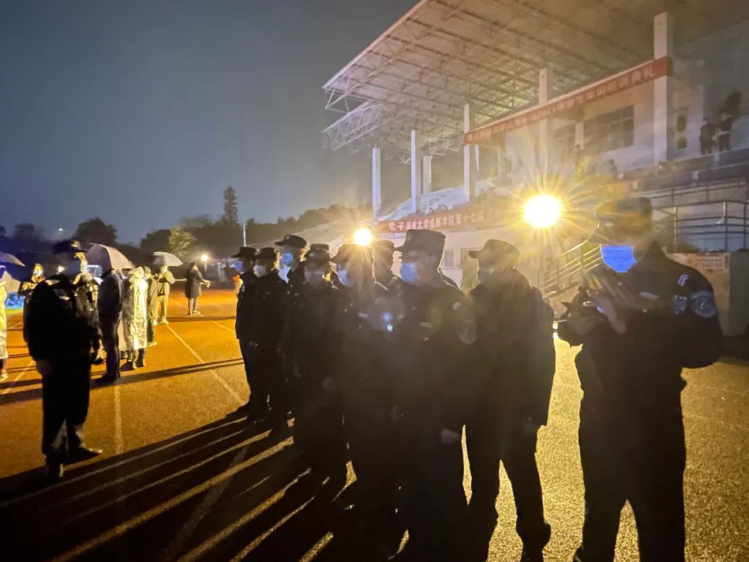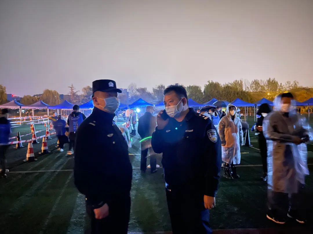 为做好全校学生以及教职员工全面核酸检测工作,民辅警配合学校在学校操场搭建核酸检测点,同时在该校各路口处安排警力开展引导、现场指挥学生以及教职员工有序排队,并对已完成核酸检测的人员引导有序撤离。共计搭建核酸检测点50个,连夜完成师生、教职员工核酸检测9000余人。确保了核酸采样工作安全、有序、高效。