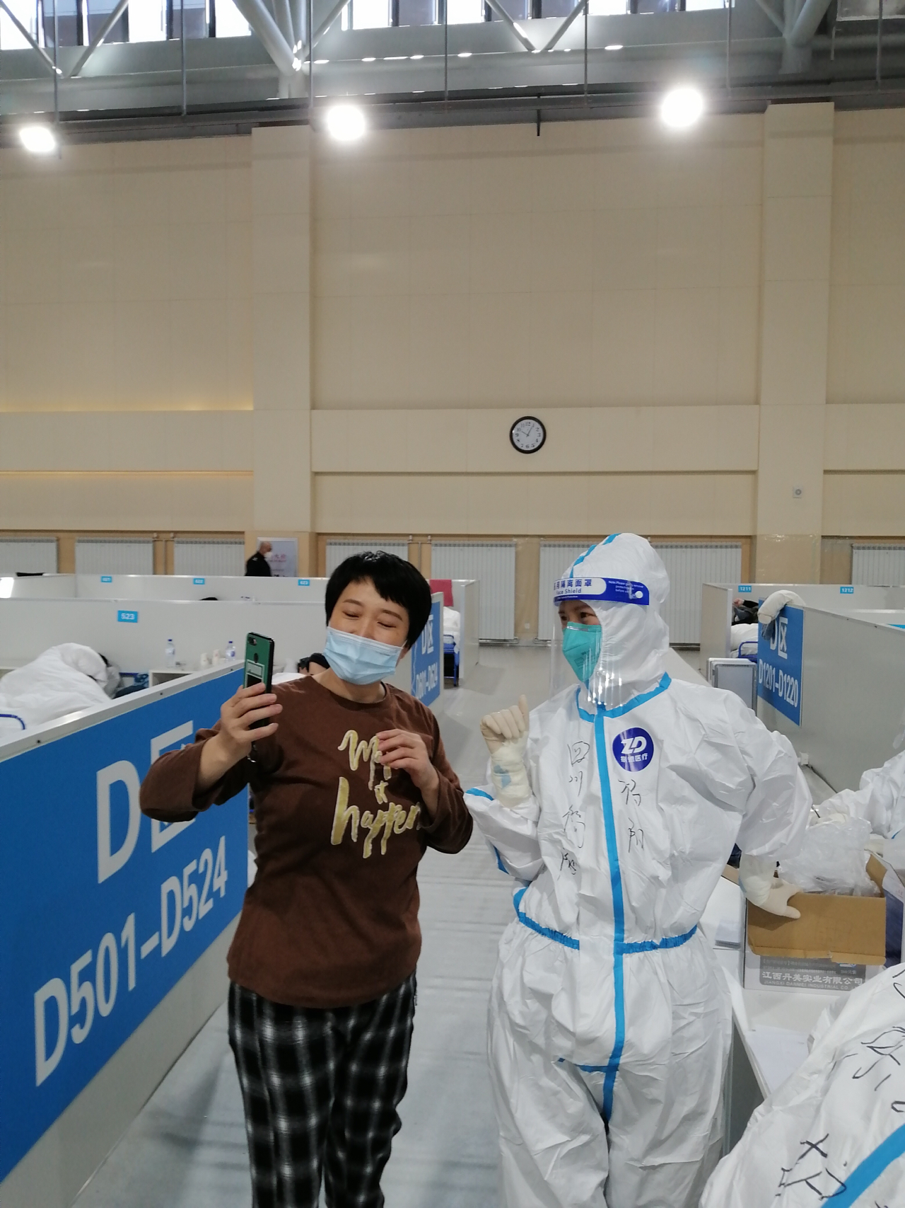 张阿姨主动和我介绍情况:‘四川老乡,你好,我老公是四川金堂的,看见你们防护服上写着四川,我就很亲切,谢谢你们来长春支援,你们来了我们就看到了回家的希望。“