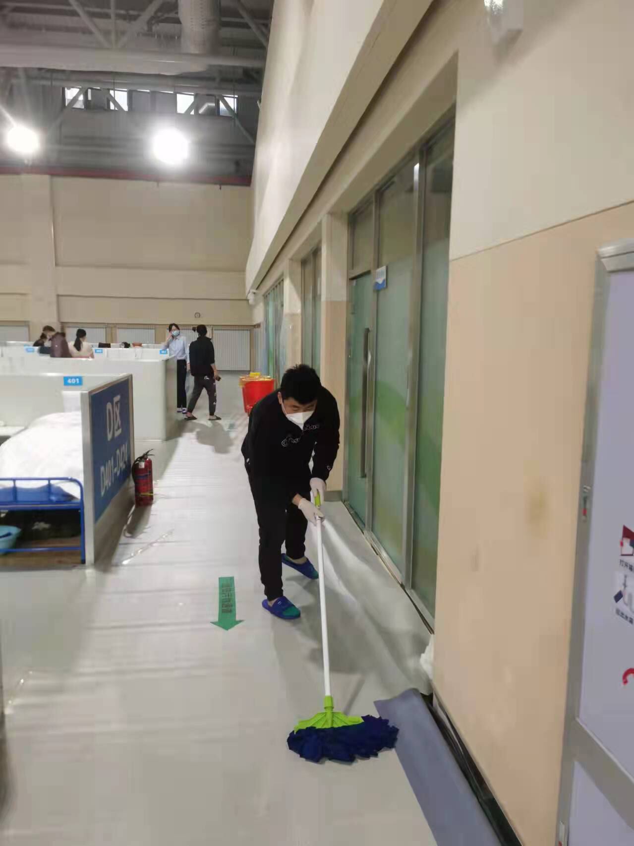 912床是一位热心的东北小伙子,他是志愿服务队小队长,舱内哪里有活哪里就能看见他灵活的身影,协助医护人员进行生活物资的发放,帮助和照顾个别需要的患者,抢着拖地,我们想阻止他时,他总是乐呵呵一笑“我锻炼锻炼恢复得更快。”