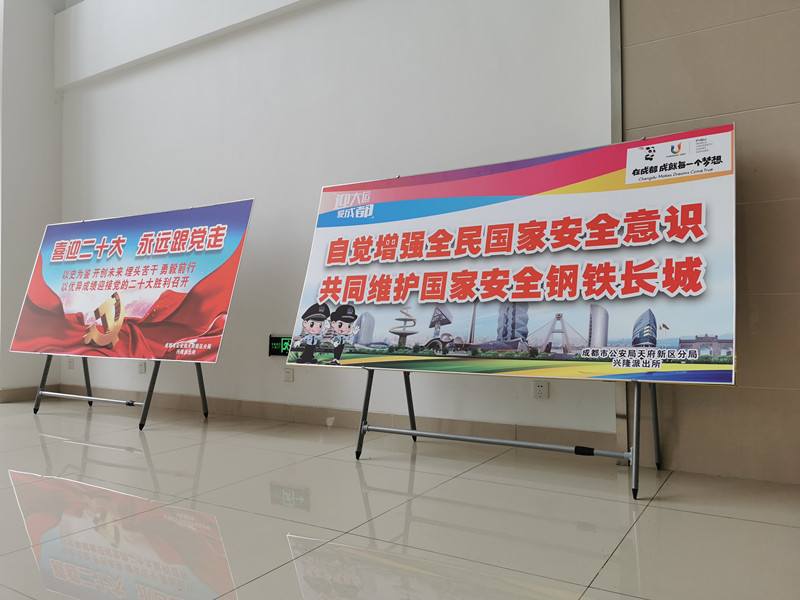 为切实做好“4.15”全民国家安全教育日宣传活动,推动安全法治宣传教育工作深入开展,增强全民安全意识和法治意识,成都市公安局天府新区分局组织各成员单位在单位内部、寄递网点、广场、社区、政务中心等人员密集场所,利用LED户外大屏、社区宣传栏、交通智能管理大屏、互联网等多种形式开展宣传活动,设立50余个点位,制作展板百余个,营造出了国家安全人人有责、人人可为的浓厚氛围。