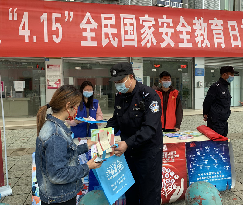 万安、永兴、煎茶、太平派出所分别开展了“全民国家安全教育日”宣传进社区活动。民辅警深入社区、市场、商铺、小区,为市民们开展国家安全法治宣传教育,进一步提高辖区群众国家安全意识,引导大家积极主动履行维护国家安全、荣誉和利益的基本义务。