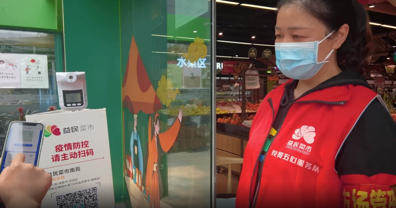 益民菜市相关负责人介绍,“作为成都市重点保供企业,我们将进一步落实防疫主体责任,坚决遏制疫情的扩散和蔓延。针对‘五一’期间客流量大、人员流动性强的特点,我们将进一步强化入口测温、扫码亮码、佩戴口罩、每日对市场消毒不少于4次等防疫措施。实行门店员工及商家三天两检常态化核酸检测工作,严格落实商家及员工离蓉上报审批流程,返蓉上岗前持24小时核酸检测阴性证明方能上岗。同时,加强防控物资等资源储备,提升防控能力,为广大市民提供安全、放心的购物环境。”